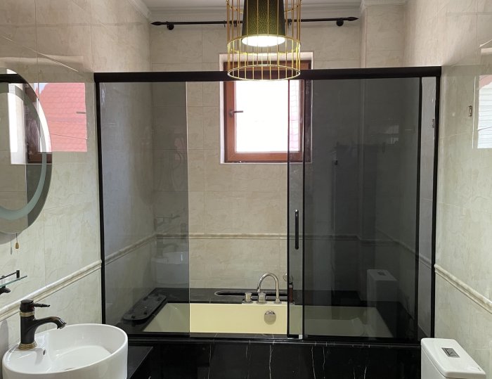 Для небольших ванных комнат дизайнеры часто рекомендуют светлое матовое стекло — оно мягко рассеивает свет, визуально расширяет пространство и обеспечивает комфортную приватность. В общественных и спа-зонах, душевых при фитнес-клубах или гостиницах, наоборот, уместны графитовые или тёмные стекла — они придают интерьеру глубину и ощущение камерности.